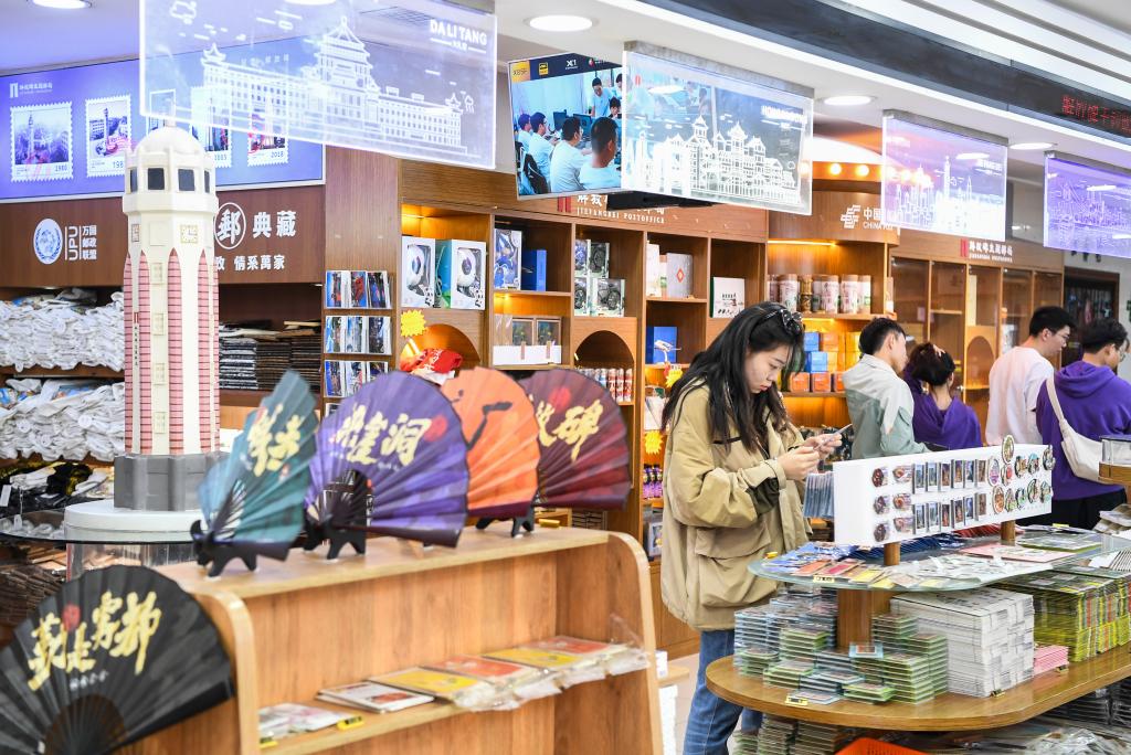 두유거리를 찾은 관광객이 29일 제팡베이 테마 우체국에서 쇼핑을 하고 있다. 2023.10.29