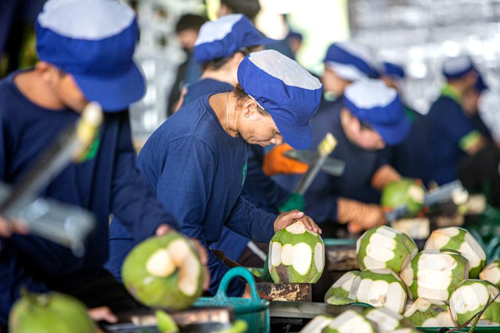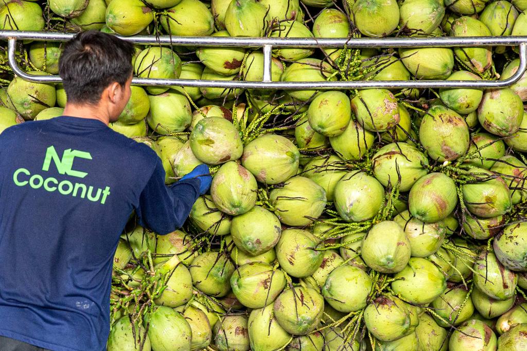 태국 중부 랏차부리 담넌사두억에 위치한 코코넛 공장. 코코넛을 포장하는 작업자의 손길이 분주하다. 모두 중국에 수출될 코코넛이다.