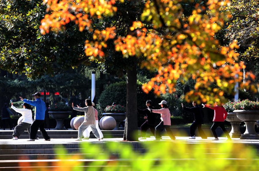 장쑤(江蘇)성 난징(南京)시의 싼차오(三橋)습지공원을 24일 드론 파노라마 사진에 담았다. (사진/신화통신)산둥(山東)성 린이(臨沂)시에서 한 여행객이 24일 빨갛게 물든 단풍나무를 감상하고 있다. (사진/신화통신)산둥성 린이시 성성위안(生生園)에서 여행객들이 24일 기념사진을 찍고 있다. (사진/신화통신)간쑤(甘肅)성 장예(張掖)시 간저우(甘州)구 북쪽 근교의 습지 공원 호수에서 백조들이 24일 먹이를 찾으며 노닐고 있다. (사진/신화통신)24일 후베이(湖北)성 이창(宜昌)시에 위치한 네이블오렌지 과수원의 관광둘레길을 걸으며 초겨울 풍경을 감상하는 여행객들을 드론으로 내려다봤다. (사진/신화통신) 장쑤성 시민들이 쑤저우(蘇州)공원에서 24일 태극권을 수련하고 있다. (사진/신화통신)