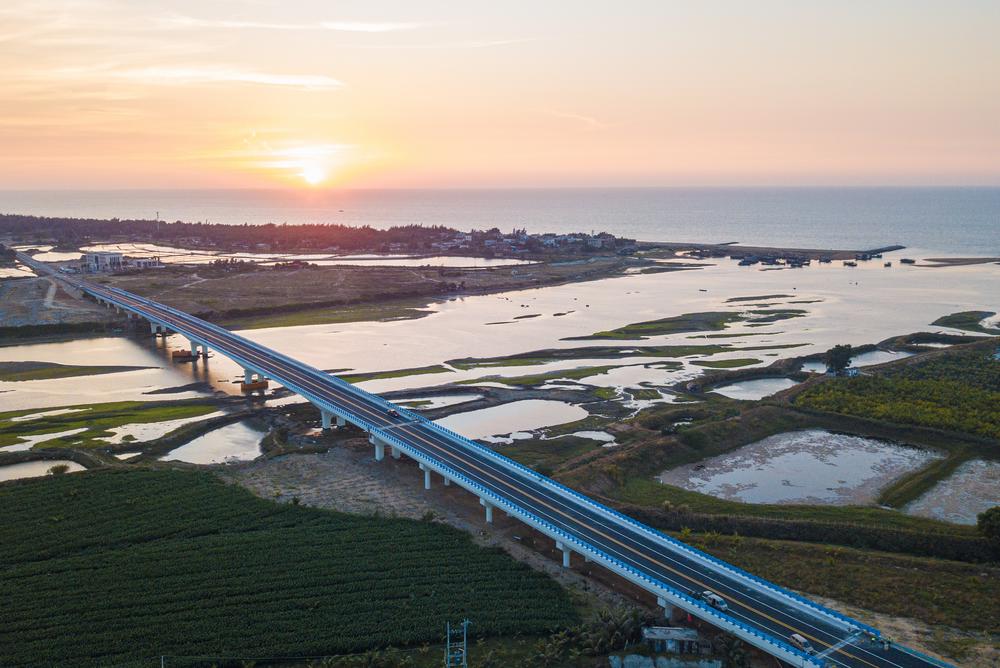 하이난 환다오 관광도로 둥팡구간 간청(感城)항 대교를 지난 9일 드론에 담았다. 2023.12.10