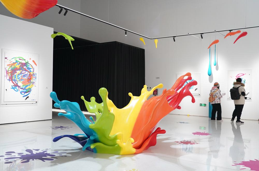 관람객이 30일 베이징시 하이뎬(海淀)구에 위치한 베이징시대미술관에서 예술전을 관람하고 있다. 2023.12.30