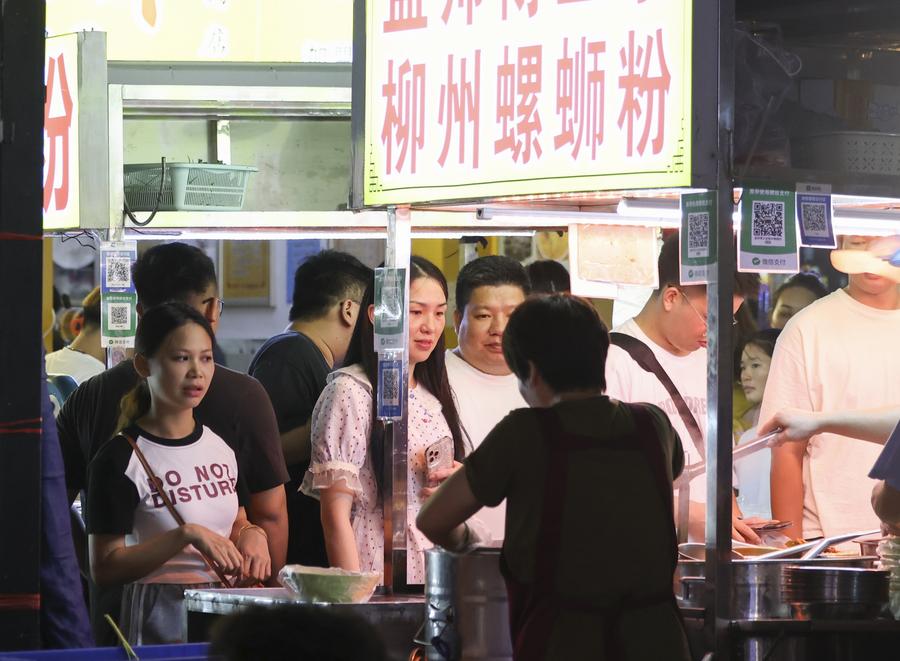 난닝(南寧) 랑시(埌西) 야시장은 밤의 장막이 드리우자 사람들로 인산인해를 이뤘다. 현지 관계자는 "공연이 끝나면 많은 사람들이 야시장으로 몰려와 새벽까지 줄을 서고 물건을 구매한다"며 공연이 늘어나면서 외지 관광객 수도 점차 증가하고 야시장 인기도 갈수록 높아지고 있다고 소개했다.