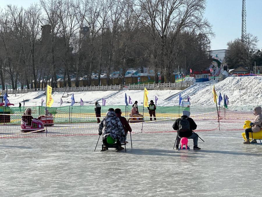 [신화망 하얼빈 2월3일] 눈썰매 튜브를 끌며 달리는 오프로드차(ORV), 스노모빌 이용객의 웃음소리, 파란 천막 안에서 즐기는 얼음낚시...영하 30도에 육박하는 추운 날씨에도 헤이룽장(黑龍江)성 후린(虎林)시 후터우(虎頭)빙설공원은 사람들로 북적인다.
