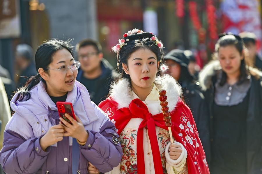 춘절 연휴 동안 새로운 스타일의 중국 전통의상을 입은 방문객이 인기 관광 명소, 식당, 백화점, 사원 축제에서 심심치 않게 등장했다. 이들은 용과 봉황을 테마로 한 누빔 조끼, 중국 전통 매듭단추를 사용한 송대 비단 외투, 중국 명·청대 한족 여성의 전통 치마 마몐췬(馬面裙)을 입고 거리를 누볐다.