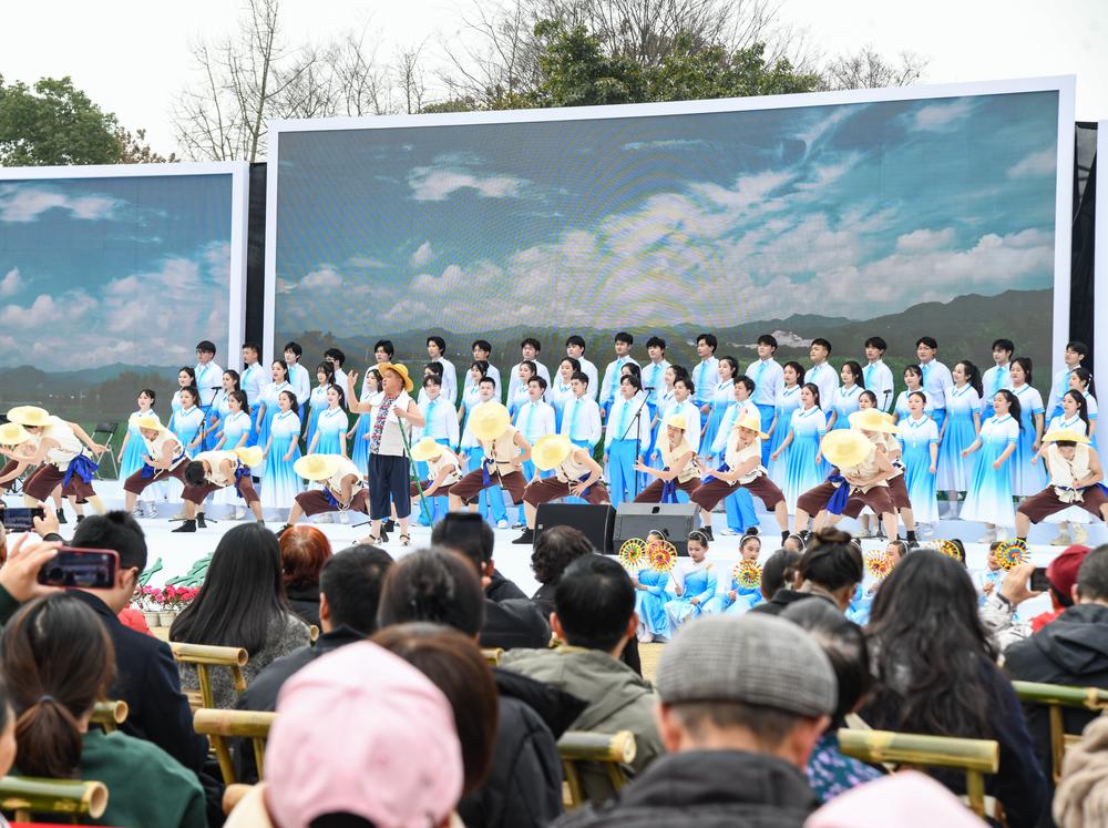 이날 원장구 완춘(萬春)진에서 열린 청두 농촌 뮤직 페스티벌 개막식에서 공연을 펼치고 있는 현지 농민 합창단. 2024.3.5