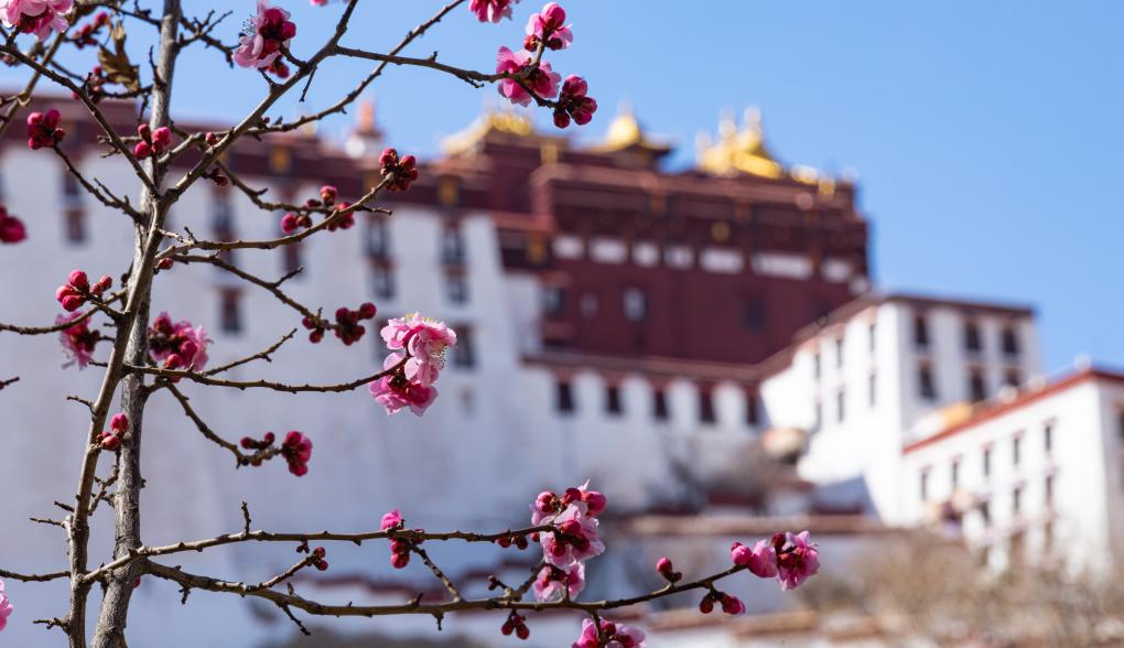 [신화망 라싸 3월15일]14일 시짱(西藏) 라싸(拉薩)시 쭝지아오루캉(宗角祿康) 공원에서 찍은 봄꽃.
