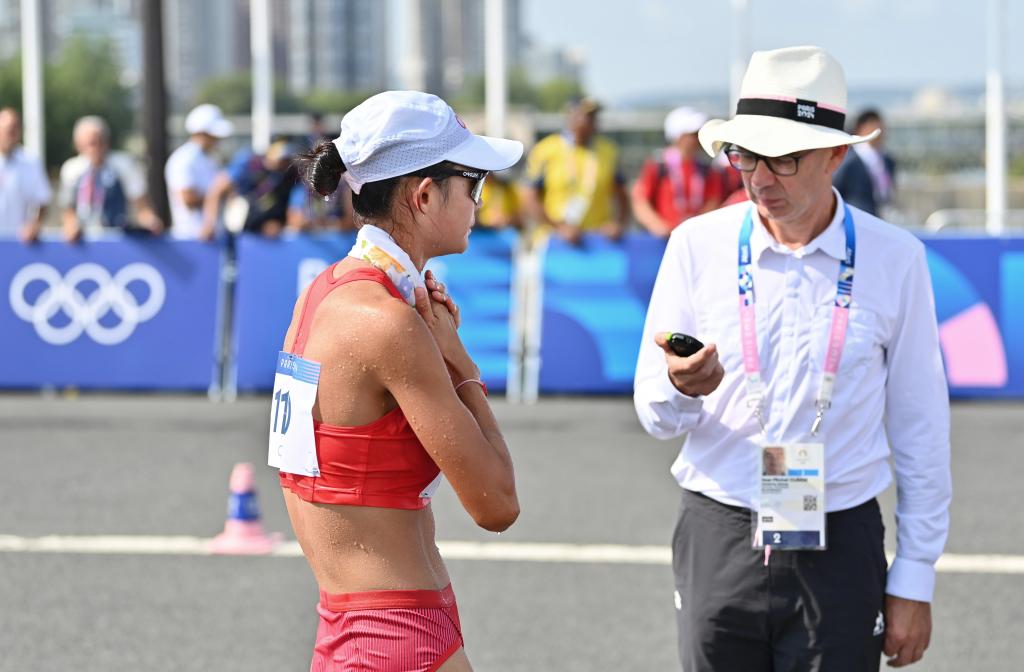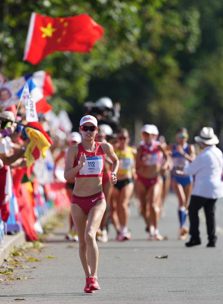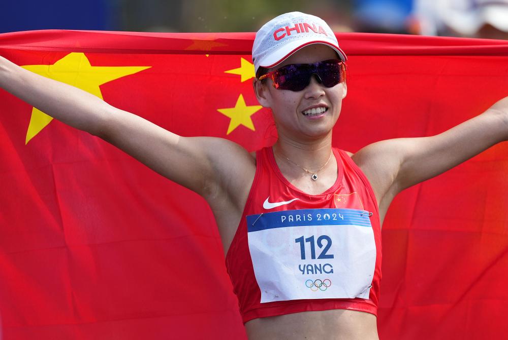 [신화망 파리 8월2일]중국의 양자위(楊家玉)가 1일(현지시간) 열린 파리올림픽 여자 20km 경보 결승에서 금메달을 목에 걸었다.pagebreak