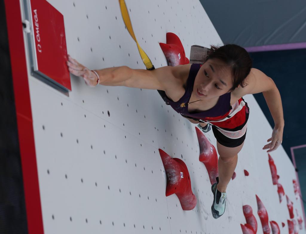 중국의 덩리쥐안(鄧麗娟)이7일(현지시간) 열린 파리올림픽 스포츠클라이밍 여자 스피드 결승에서 은메달을 목에 걸었다.