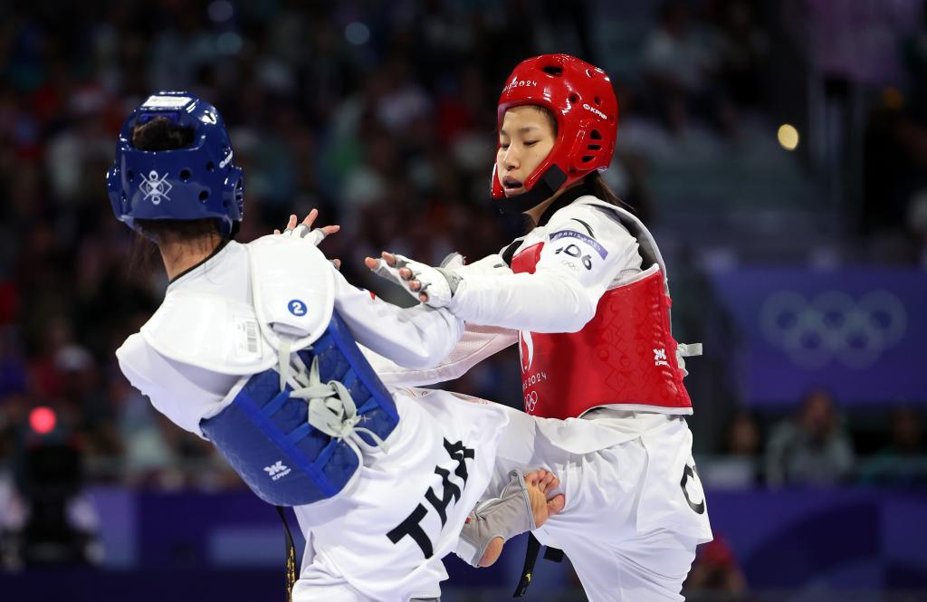 [신화망 파리 8월8일]중국의 궈칭(郭清)이 7일(현지시간) 열린 파리올림픽 태권도 여자 49㎏ 이하급 결승에서 태국의 파니팍 왕파타나킷에 패해 은메달을 획득했다.pagebreak