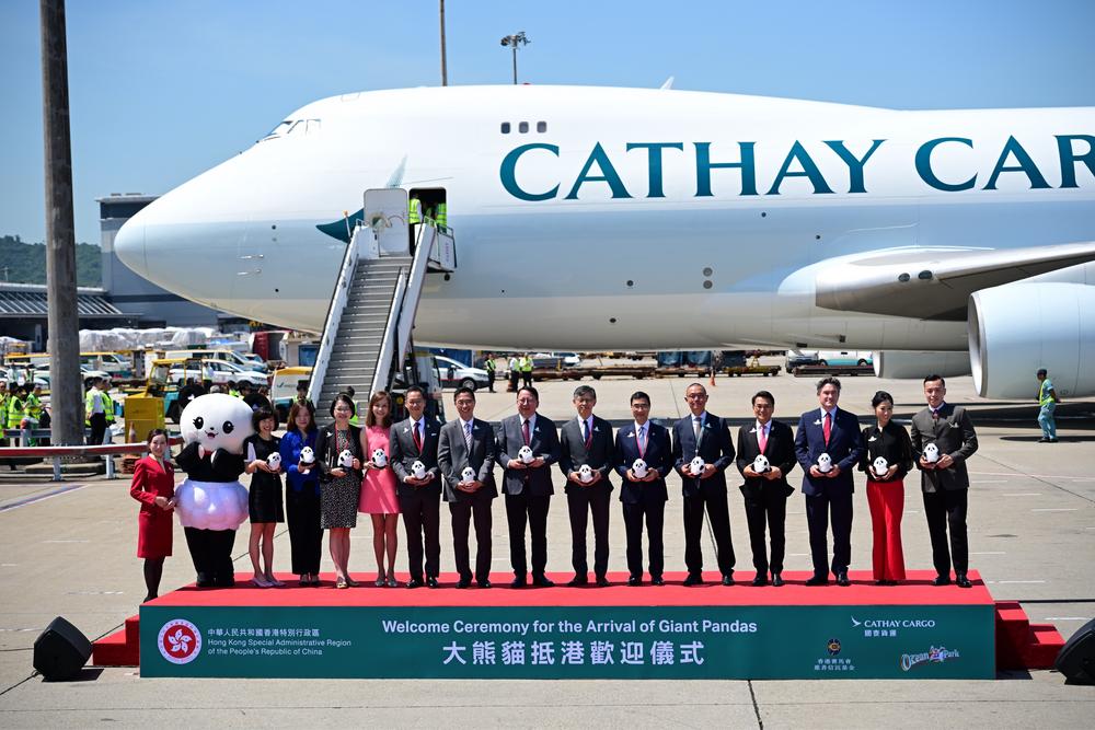 이날 홍콩국제공항에서 열린 자이언트 판다 환영식. 2024.9.26