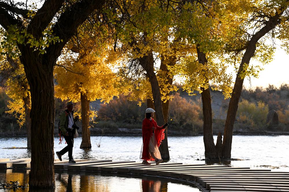 [신화망 아라산 10월14일] 네이멍구(內蒙古)자치구 아라산(阿拉善)맹 어지나(額濟納)기 백양나무숲(胡楊林)의 가을 풍경이 절정을 이루면서 많은 관광객의 발길이 이어지고 있다. 이달 1~12일 어지나기를 찾은 관광객은 총 136만 명(연인원)을 넘어서며 전년 동기 대비 9.83% 증가했다.