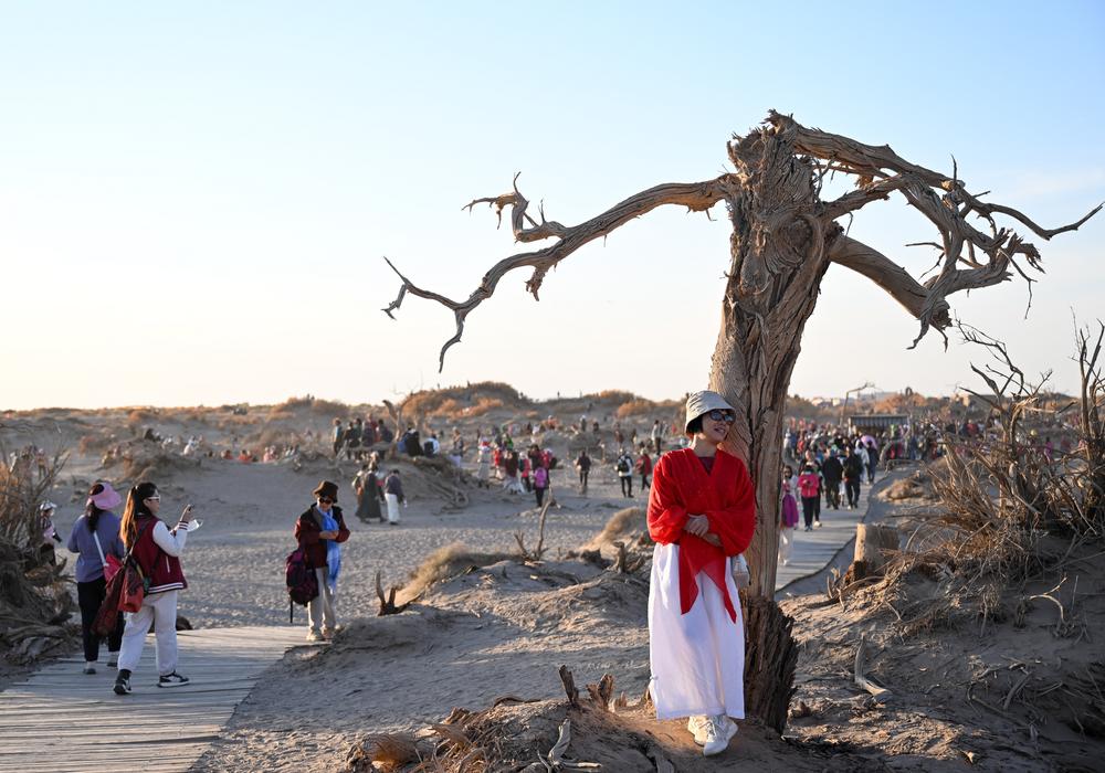 완연한 가을에 접어들자 네이멍구(內蒙古)자치구 아라산(阿拉善)맹 어지나(額濟納)기의 각 관광지가 그림 같은 풍경을 연출하며 관광객들의 발길을 끌었다. 2024.10.15