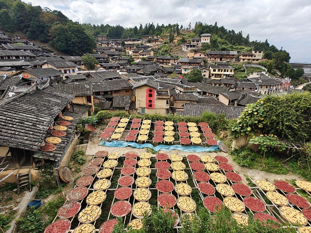 [신화망 싼밍 10월18일] 황금빛 가을로 물든 푸젠(福建)성 싼밍(三明)시 유시(尤溪)현 구이펑(桂峰)촌에선 가을 햇살에 농작물을 말리는 모습이 옛 민가와 아름답게 어우러져 많은 관광객의 발걸음을 이끌고 있다.