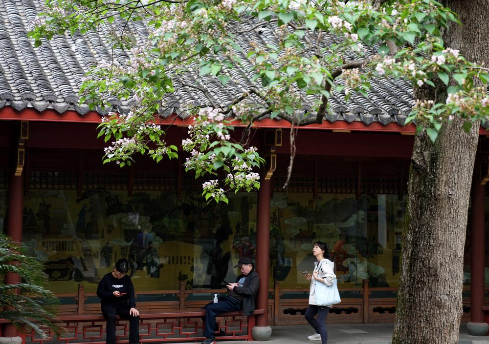 [신화망 항저우 4월22일] 최근 저장(浙江)성 항저우(杭州) 우산(吳山) 관광지에 있는 530년 이상 된 두 그루의 고목나무에 꽃이 피었다. 이를 보기 위해 많은 시민과 관광객의 발길이 이어지고 있다.