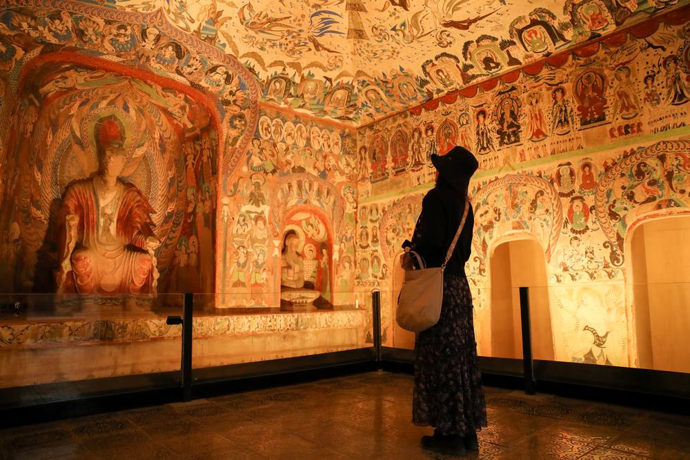 지난 10일 둔황(敦煌) 석굴문화재 보호연구전시센터를 관람하는 관광객.