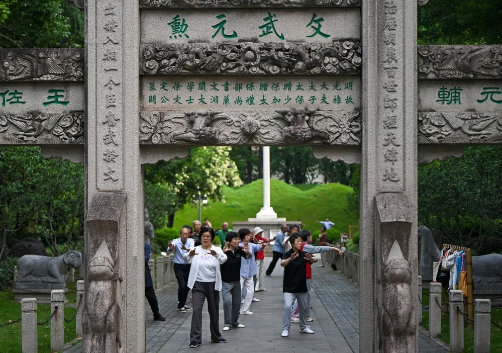 18일 스자좡시 정타이광장에서 열린 합동 결혼식에 참가한 신혼부부들. 2025.5.18