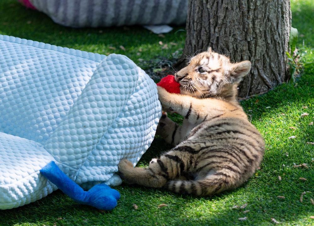 11일 둥베이후린위안에서 놀고 있는 새끼 동북호랑이. 2025.6.11