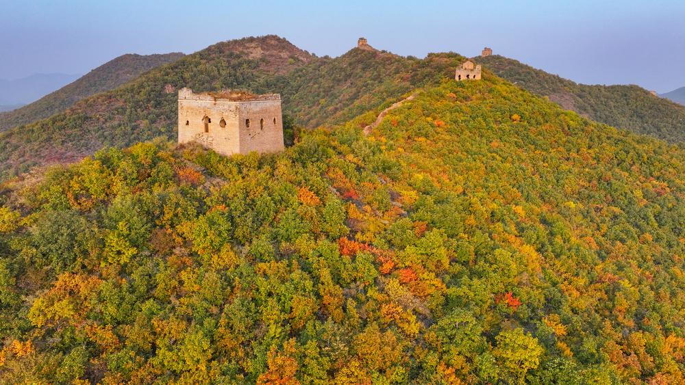 27일 산시(山西)성 지(吉)현의 황허(黃河) 후커우(壺口) 폭포 관광지를 둘러보는 관광객들을 드론으로 내려다봤다.