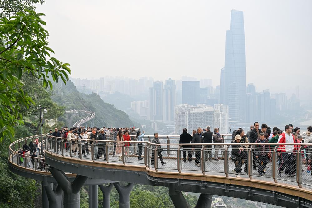 15일 리진허가 운영하는 길거리 커피숍이 자리한 솽훙(雙虹)교 일대를 드론에 담았다. (사진/신화통신)
