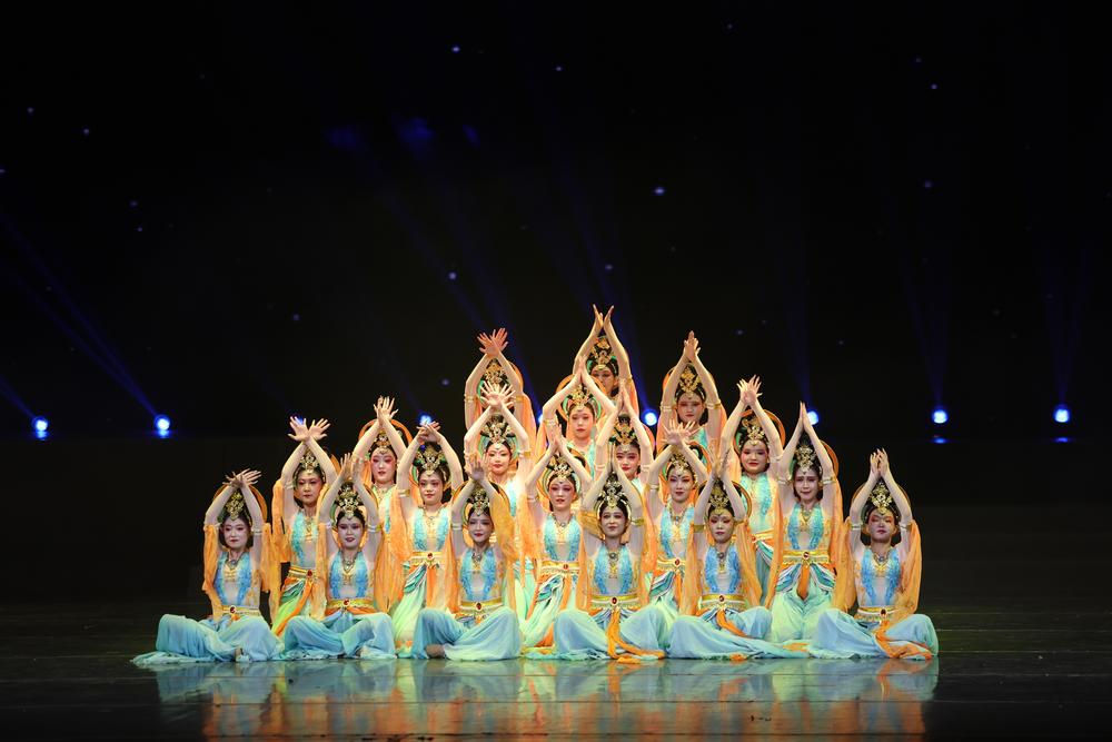 이날 둔황(敦煌)춤 공연을 펼치는 주취안(酒泉)시 문화관 공연자들. 2026.1.8