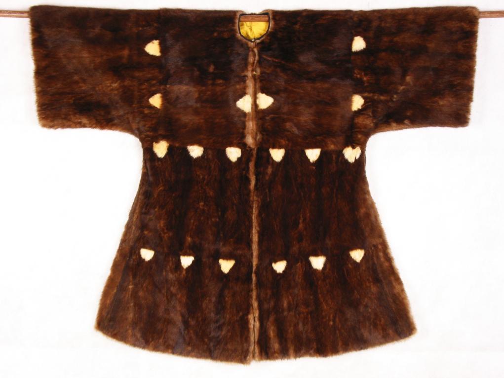 盛京圍場除作為狩獵場所之外,主要作用還有為清宮“貢鮮”,即向清宮提供鹿、狍等獵物,以及將其加工後製成的各種製品。這也是盛京圍場不同於其他圍場之處。展覽中展出多件由鹿皮、貂皮製成的配飾、服飾,如“清梅花鹿皮行裳”“清紫緞蘭花紋白狐皮馬褂”“清明黃色綢貂皮褂”等。
