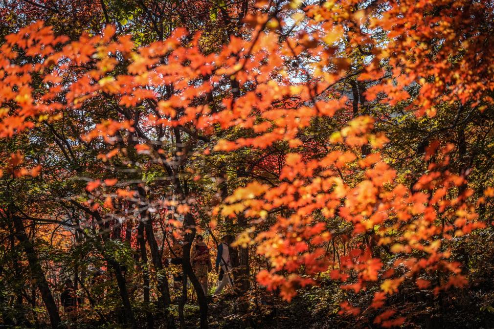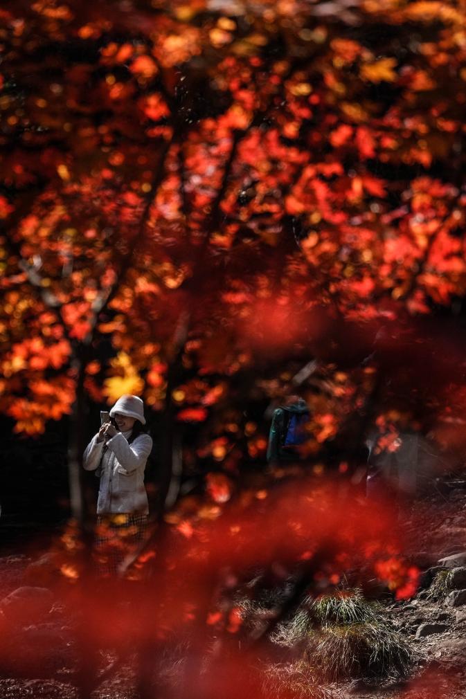 國慶假期的最後一天,遼寧本溪老邊溝風景區內的楓樹正值最佳觀賞期,很多游客來到這裡觀賞金秋“楓”景。