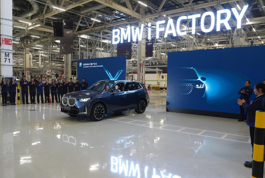 1月7日,在瀋陽的華晨寶馬鐵西工廠裏達廠區,一輛全新BMW X3汽車駛出最終裝配線。新華社記者 李鋼 攝