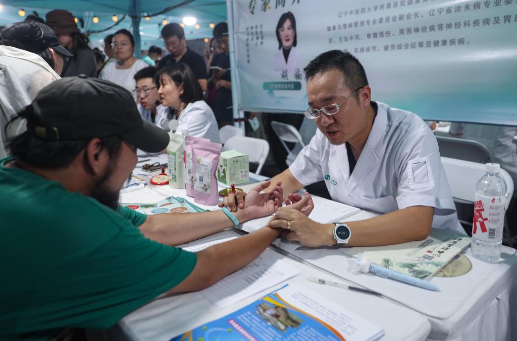 新華社瀋陽5月13日電(記者王瑩、高爽)“中醫藥夜市太好逛了,不僅有吃有喝,還有平時‘一號難求’的專家現場坐診把脈,還能購買中草藥香囊、藥粧、艾灸、香薰等各種文創産品。”42歲的本溪市民朱先生説。