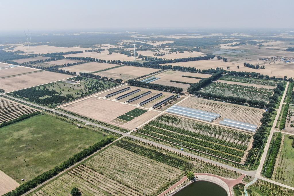 遼寧省農業科學院沙地治理與利用研究所章古&基地(無人機照片)。新華社記者潘昱龍攝