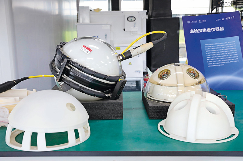 記者在上海交通大學李政道研究所看到,海試的探測裝置以六棱柱結構固定了上中下三個玻璃球。中間的是發光球,以已知波長、頻率發光。上下兩個均為前文中所説的光學探測球,負責測量光到達的時間和強度,通過解碼光在傳播過程中的散射和吸收情況,得出海水的光學性質。