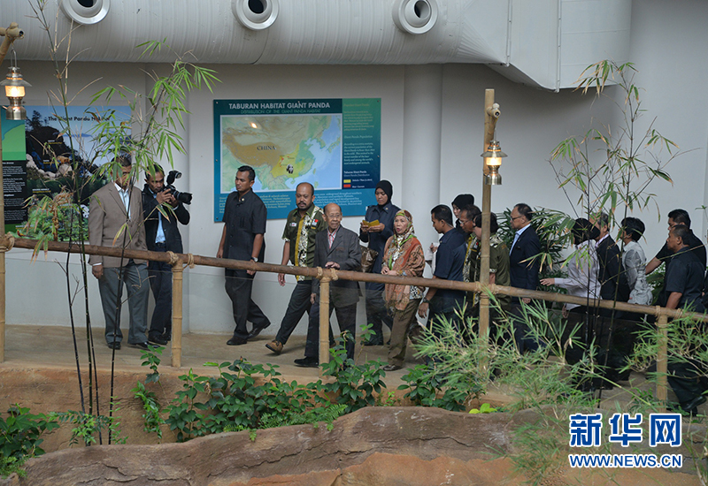 馬來西亞國家最高元首阿卜杜勒・哈利姆・穆阿扎姆・沙阿和其家人一同探望中國旅馬大熊貓“福娃”和“鳳儀”。