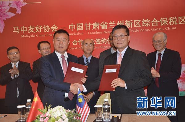 馬來西亞企業代表與蘭州新區綜合保稅區代表交換協議。新華網發 王大瑋 攝