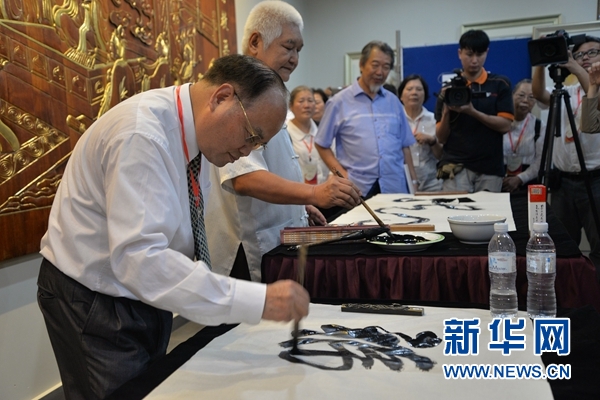 馬來西亞當地書法家現場書寫中國書法。新華網發 王大瑋攝