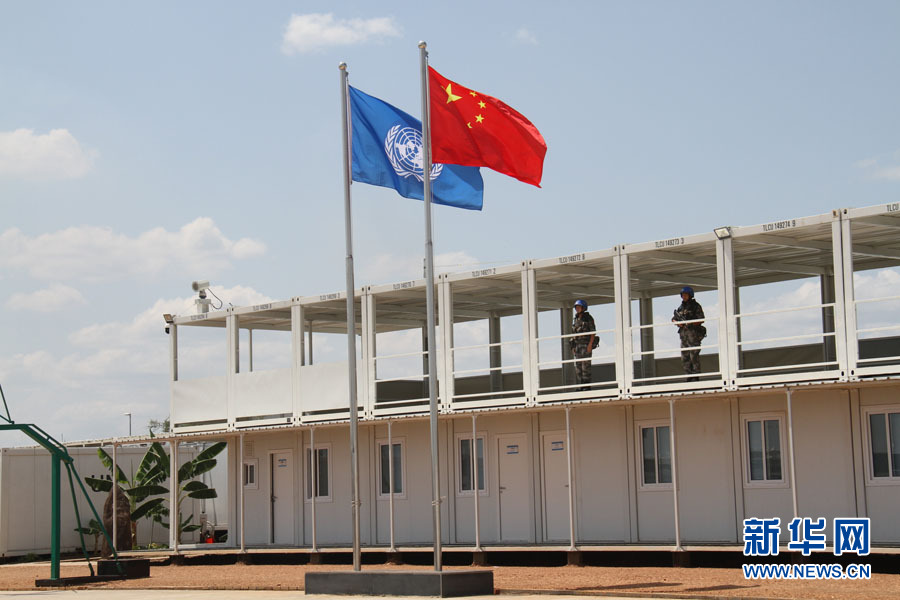 走進大門,首先映入眼簾的是一排排嶄新、整齊的白色板房錯落有致。在營區廣場中央,聯合國旗和五星紅旗迎風飄揚。
