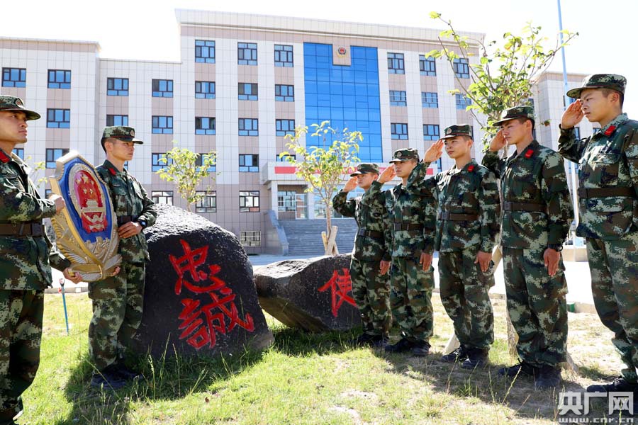 紅山嘴邊檢站退伍老兵面向警徽莊嚴敬禮(縣濤濤攝)