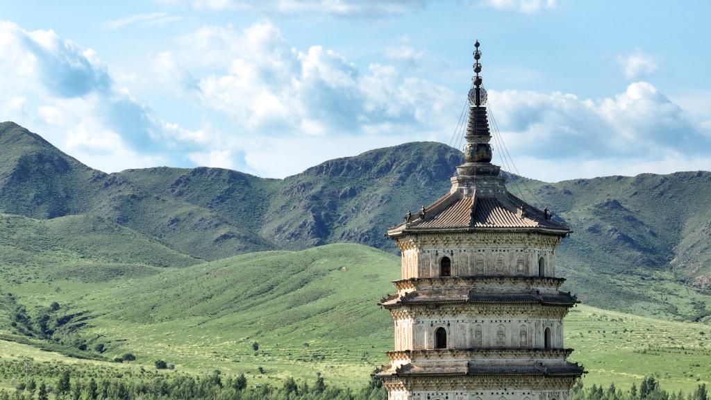 7月20日拍攝的內蒙古赤峰市巴林右旗遼慶州白塔(無人機照片)。
