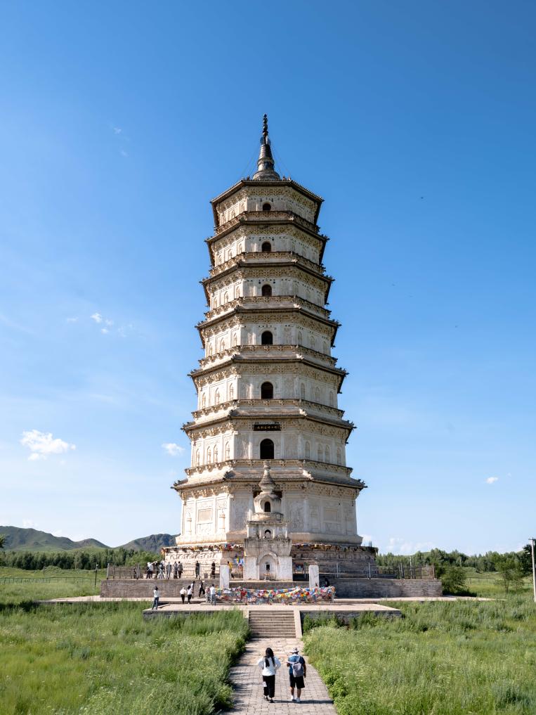 位於內蒙古赤峰市巴林右旗的遼慶州白塔又稱遼釋迦佛舍利塔,是第三批全國重點文物保護單位——遼陵及奉陵邑的組成部分。該塔始建於遼重熙十六年(1047年),為八角七級、通高73.27米的磚木結構拱閣式塔,是研究遼代建築與佛教文化的重要實物遺存。近年來,在當地有關部門的修繕和保護下,遼塔得到有效保護,吸引游客前來參觀游玩。