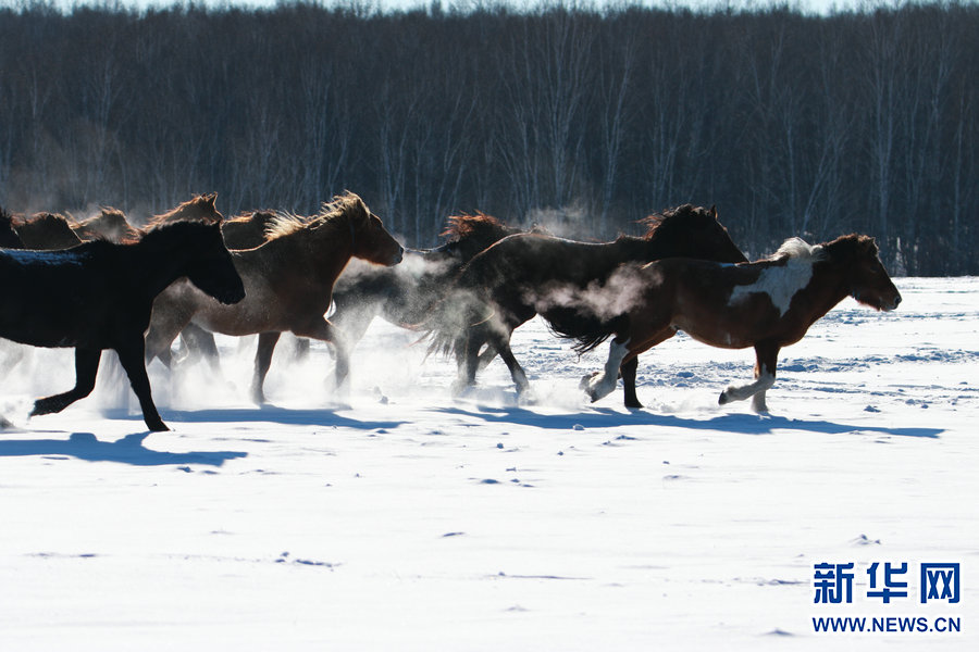 駿馬踏雪前行。新華網發(王彥江 攝)
