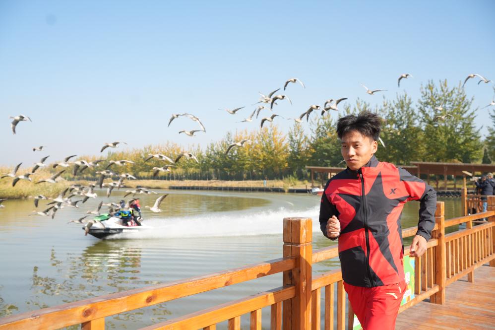 當日的領跑活動中,在何傑的帶領下,學生們紛紛感受到了長跑運動的魅力和沙湖濕地自然生態之美。