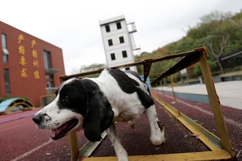 Anos crepusculares de cão de resgate heroico de corpo de bombeiros em Nanjing