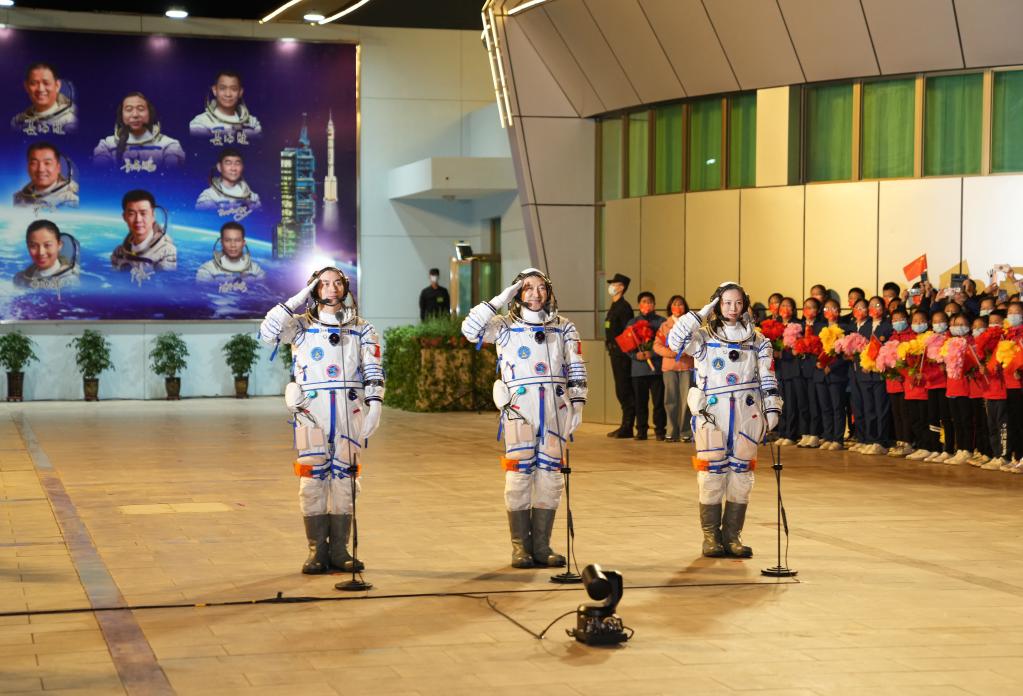 China realiza cerimônia de despedida para astronautas da missão Shenzhou-13