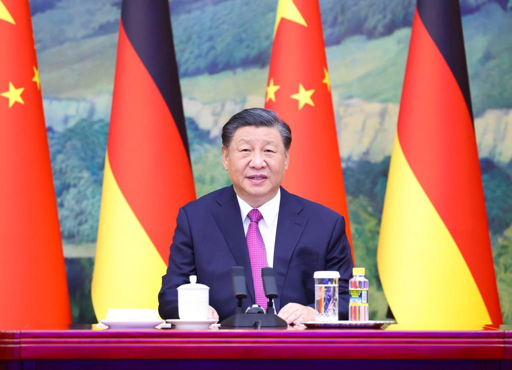 Beijing, 3 nov (Xinhua) -- O presidente chinês, Xi Jinping, reuniu-se nesta sexta-feira com o chanceler alemão, Olaf Scholz, por videoconferência.
