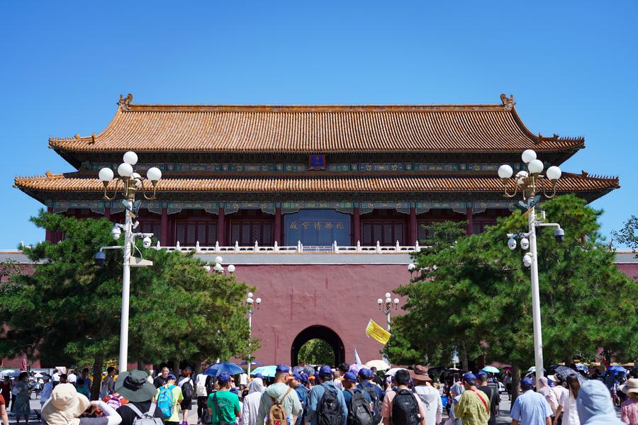Pessoas visitam a Torre do Tambor em Beijing, capital da China, em 16 de julho de 2024. (Xinhua/Chen Yehua)Pessoas visitam a Ponte Wanning em Beijing, capital da China, em 16 de julho de 2024. (Xinhua/Chen Yehua)Pessoas visitam o pavilhão Wanchun no topo da montanha no parque Jingshan em Beijing, capital da China, em 16 de julho de 2024. (Xinhua/Chen Yehua)Esta foto tirada em 16 de julho de 2024 mostra uma vista da Cidade Proibida em Beijing, capital da China. (Xinhua/Chen Yehua)Esta foto tirada em 16 de julho de 2024 mostra uma vista do Templo Ancestral Imperial em Beijing, capital da China. (Xinhua/Chen Yehua)Esta foto tirada em 16 de julho de 2024 mostra uma vista do Altar da Terra e Grãos em Beijing, capital da China. (Xinhua/Chen Yehua)Esta foto tirada em 17 de julho de 2024 mostra o Portão Duanmen, ou a entrada norte da Cidade Proibida em Beijing, capital da China. (Xinhua/Chen Zhonghao)A tribuna de Tian'anmen e a Ponte Rio de Água Dourada são fotografadas em Beijing, capital da China, em 17 de julho de 2024. (Xinhua/Chen Zhonghao)A Praça Tian'anmen e seus prédios ao redor são fotografadas em Beijing, capital da China, em 17 de julho de 2024. (Xinhua/Chen Zhonghao)O Portão Zhengyang é fotografado a partir de sua torre de flechas em Beijing, capital da China, em 21 de julho de 2024. (Xinhua/Chen Yehua)O Salão de Oração por Boas Colheitas, ou Qiniandian, é fotografado no Parque Tiantan (Templo do Céu) em Beijing, capital da China, em 17 de julho de 2024. (Xinhua/Chen Yehua)O salão de adoração do Templo da Agricultura é fotografado em Beijing, capital da China, em 17 de julho de 2024. (Xinhua/Zhang Chenlin)Uma seção de pavimento antigo (à direita) é fotografada no Parque Yongdingmen em Beijing, capital da China, em 18 de julho de 2024. (Xinhua/Ju Huanzong)O Portão Yongding é fotografado em Beijing, capital da China, em 17 de julho de 2024. (Xinhua/Chen Yehua)