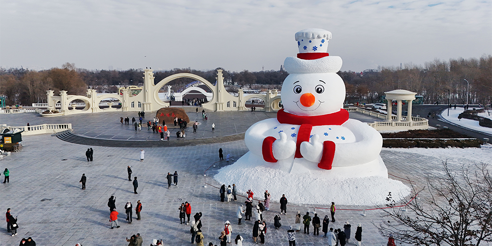 Boneco de neve gigante em Harbin atrai moradores e turistas