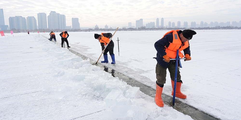 Começa a temporada de coleta de gelo em Harbin, no nordeste da China