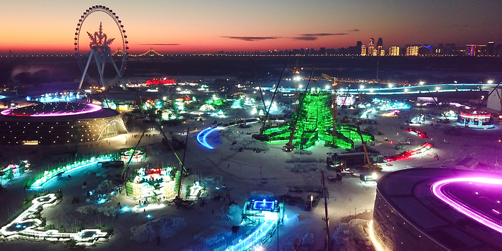 Avança a construção do Mundo de Gelo e Neve de Harbin em Heilongjiang, nordeste da China