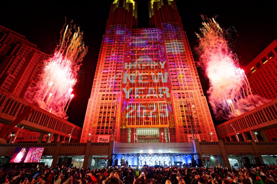 Evento de contagem regressiva do Ano Novo é realizado em Tóquio, Japão, em 1º de janeiro de 2025. (Xinhua/Zhang Xiaoyu)