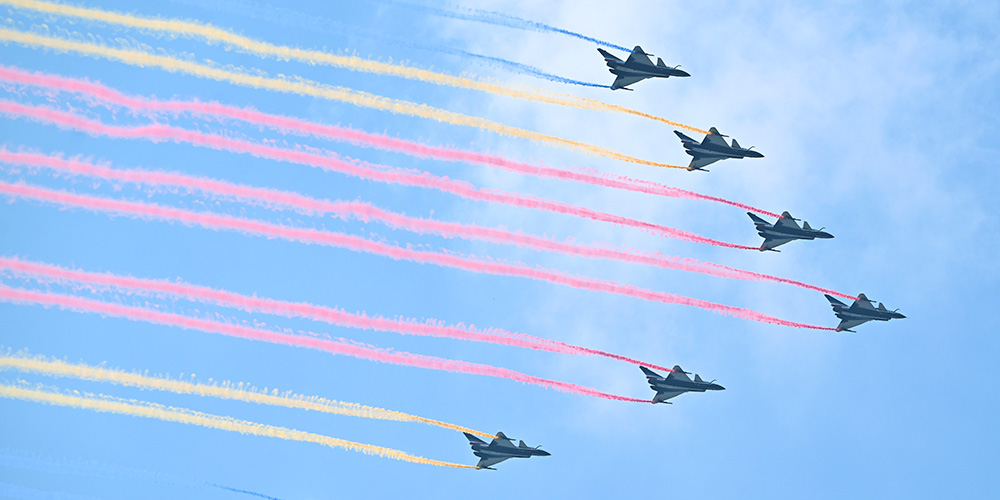 Caças sobrevoam a Praça Tian'anmen em desfile