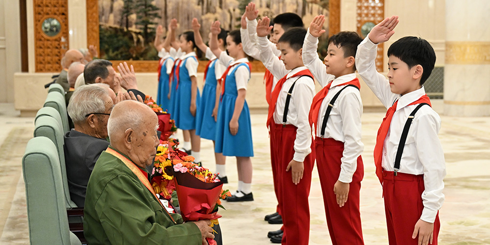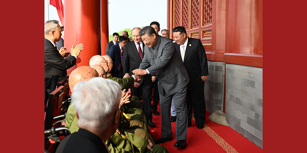 Xi sobe à Tribuna de Tian'anmen e cumprimenta veteranos de guerra