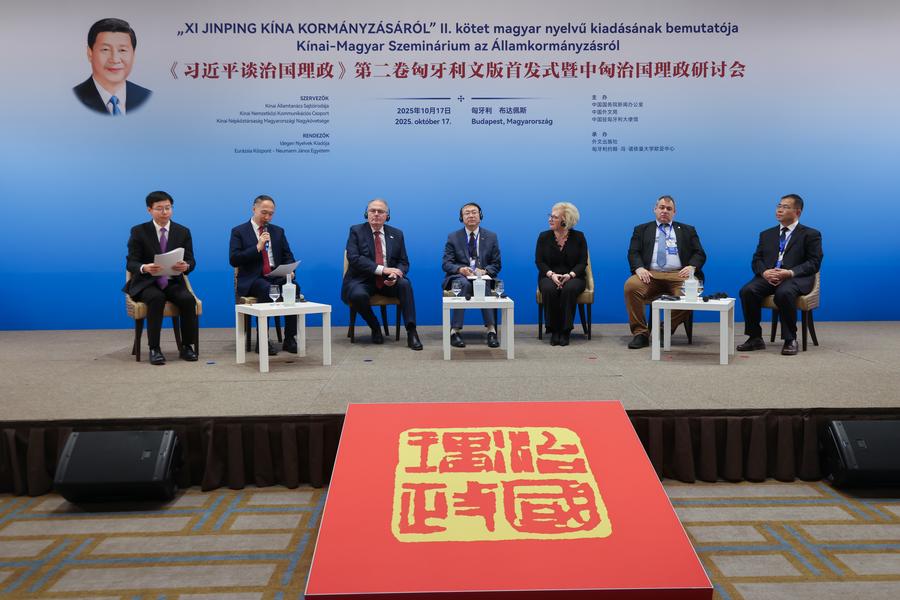 Budapeste, 17 out (Xinhua) -- O evento de lançamento da edição húngara do segundo volume de "Xi Jinping: A Governança da China" e o Simpósio China-Hungria sobre Governança do Estado foram realizados em Budapeste nesta sexta-feira, com a presença de mais de 200 representantes de vários setores de ambos os países.
